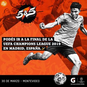 Uruguay se une nuevamente a equipos de toda Latinoamérica, Norte América, Asia y Europa para competir en el emocionante torneo de Fútbol Gatorade® 5v5. La competencia de 2019 comienza con el torneo local de donde saldrá el equipo que representará a Uruguay en la ronda final en Madrid, España.