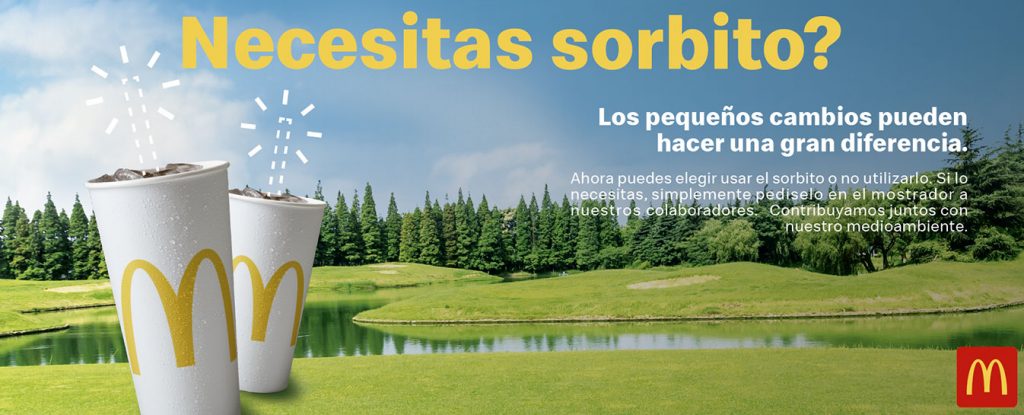 Este año se lanzó una iniciativa para concientizar sobre la utilización de materiales plásticos, reduciendo aquellos que son de un solo uso. Remover los sorbitos plásticos que se brindan únicamente a los clientes que las solicitan en el mostrador o a través de McDelivery, “es un desafío”, comenta Espasandín. “Un paso con el que se espera evitar la utilización de 300 toneladas de materiales plásticos.”
