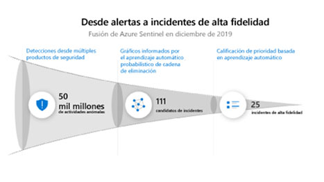 También se actualiza Azure Sentinel, el primer SIEM (Sistema de Gestión de Información y Eventos de Seguridad) fusionado con IA. Solo en diciembre de 2019, esta solución evaluó dentro de Microsoft casi 50 mil millones de señales sospechosas que hubiesen sido muy difíciles de analizar de manera manual y emitió sólo 25 incidentes de alta confidencialidad para que fuesen investigados por los equipos de SecOps.