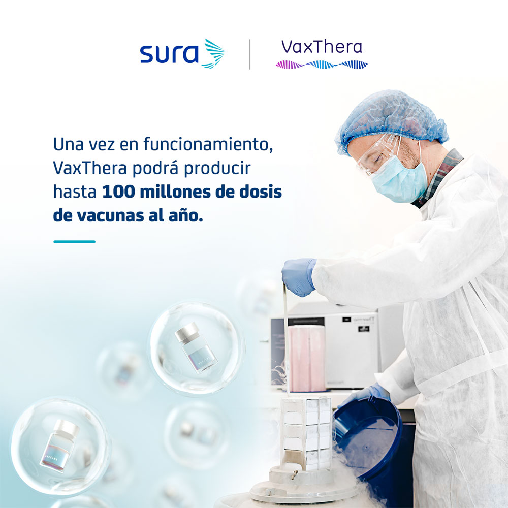 En una fuerte apuesta por el desarrollo y el bienestar de las comunidades en América Latina, Grupo SURA presentó VaxThera, una empresa SURA dedicada al desarrollo, producción e investigación en biotecnología, que ya trabaja en una vacuna contra el SARS-CoV-2 con |sello latinoamericano.