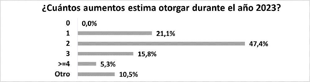 El 47,4% de las compañías relevadas está considerando otorgar 2 incrementos el próximo año; el 21,1% prevé realizar uno y el 15,8% planea otorgar tres.