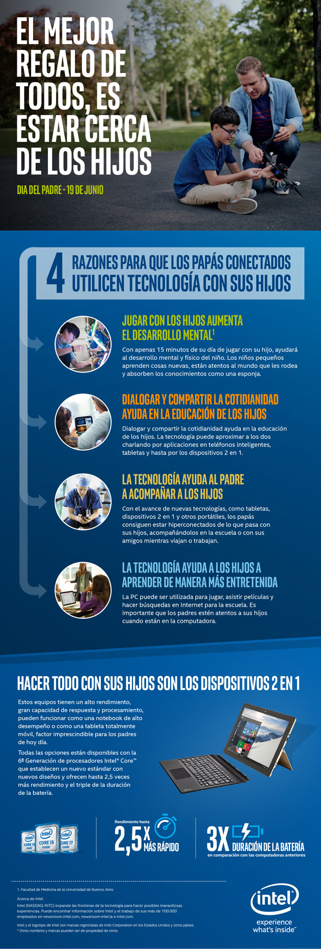 Los tiempos actuales cada vez demandan más responsabilidades y tiempo. La oficina, la casa y ahora, los hijos. Compaginar todo puede parecer una tarea difícil. Por eso, con motivo del día del padre, Intel quiere hacerle una recomendación: el mejor regalo de todos es estar cerca de los hijos.
