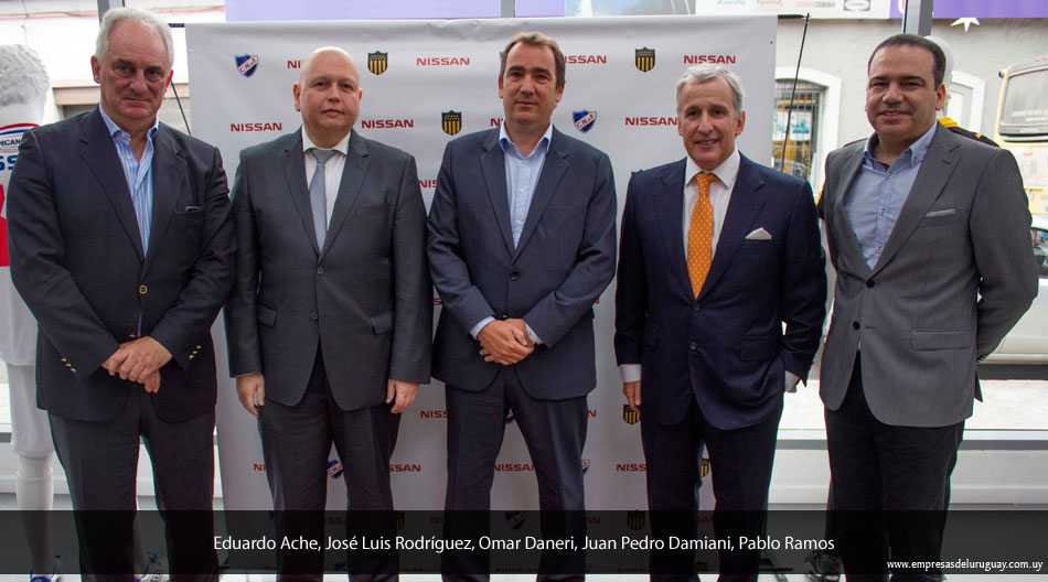 Omar Daneri, CEO de Nissan Uruguay, fue el encargado de firmar el acuerdo con los presidentes de Peñarol y Nacional, Juan Pedro Damiani y José Luis Rodríguez, en un acto al que también asistieron Pablo Ramos y Eduardo Ache, director operativo y presidente de Nissan Uruguay.