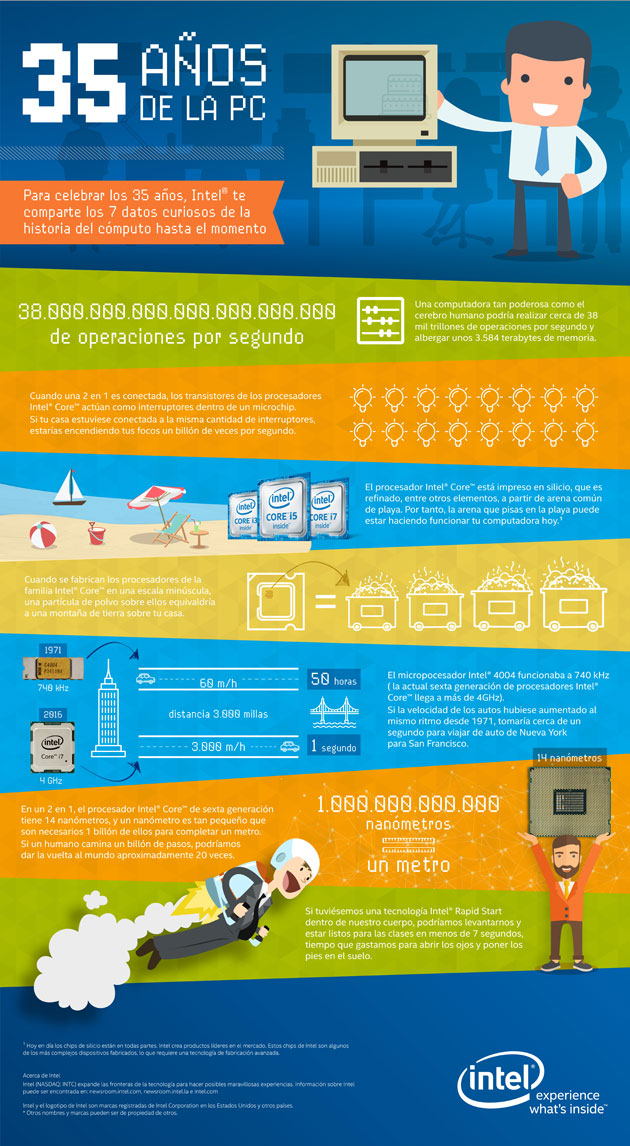 Para celebrar sus 35 años en su mejor forma Intel® te comparte los siete datos curiosos de la historia de la informática hasta el momento: