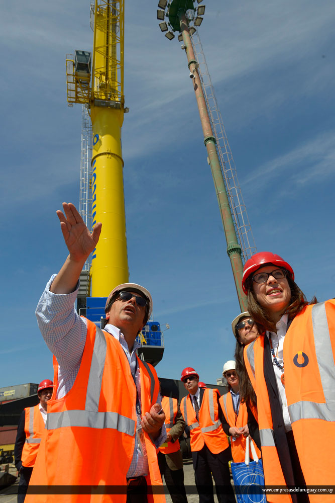La embajadora felicitó a la empresa por tener la primera mujer que maneja este tipo de grúas en Sudamérica y escuchó atenta la información sobre la campaña contra el consumo de alcohol y drogas que lleva adelante Montecon desde hace cuatro años, en acuerdo con el sindicato.
