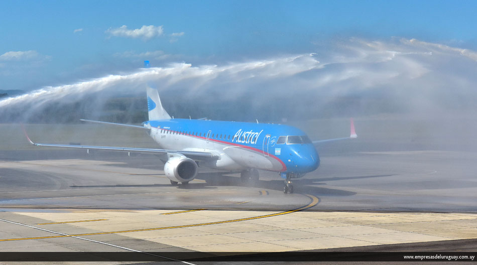 Con el tradicional bautismo de bienvenida, el Aeropuerto de Punta del Este recibió el primero de los vuelos directos de Aerolíneas Argentinas que llegan este verano desde Córdoba y Rosario. Son cinco frecuencias semanales que se suman a la tradicional Aeroparque-Punta del Este, reforzada como en cada temporada estival para atender a la mayor demanda.
